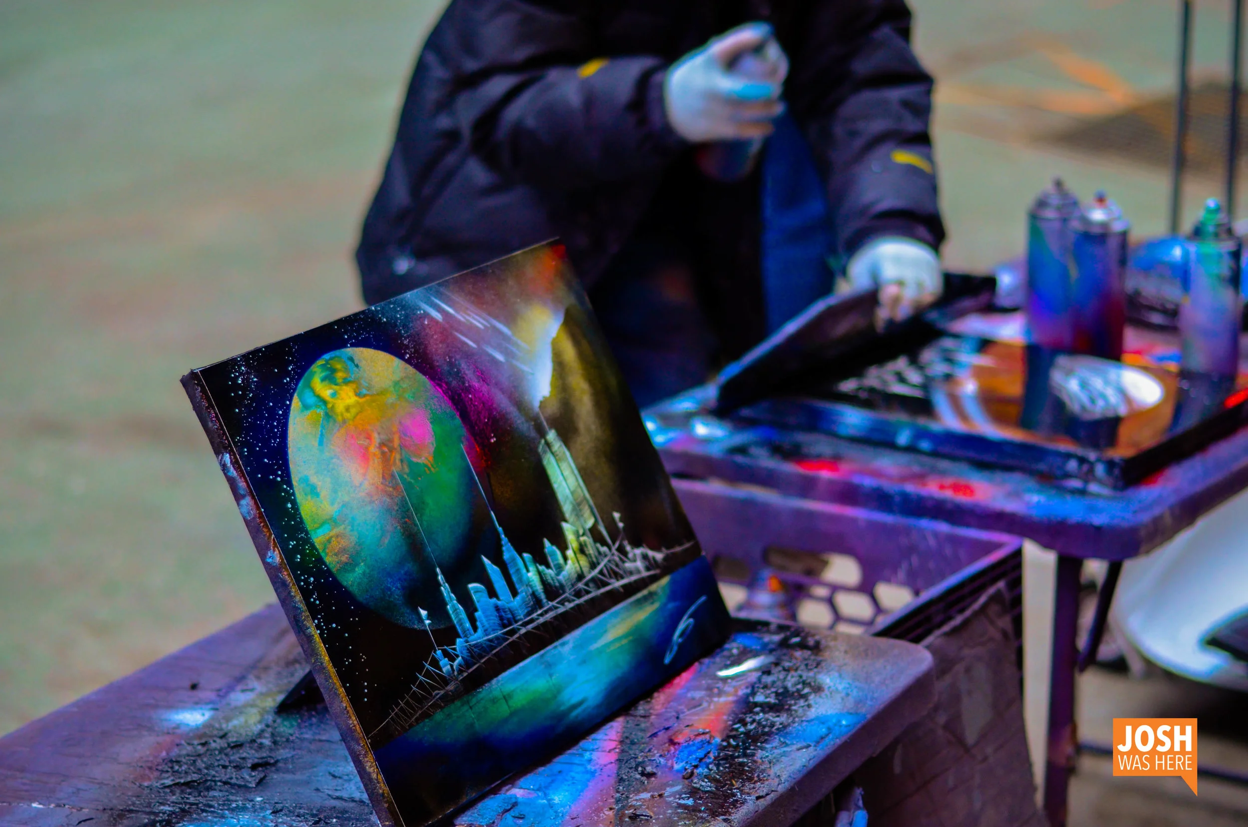 Spray paint artists in Times Square